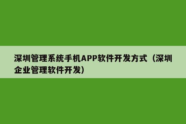 深圳市软件开发公司有介绍的吗?