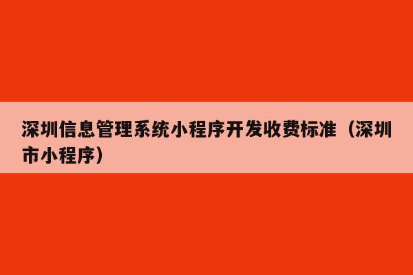 深圳小程序开发怎么收费