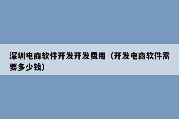 深圳这边的电商商城系统开发价格费用是多少
