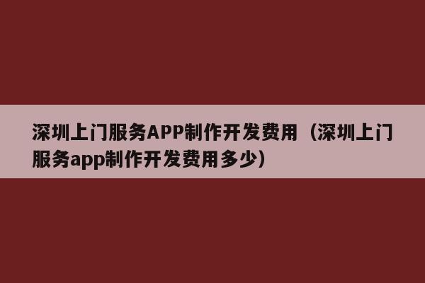 深圳app开发费用是多少?